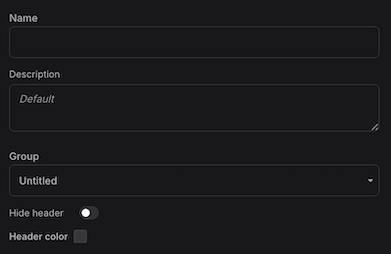 - Group: Groups organize panels into collapsible sections on the dashboard canvas.