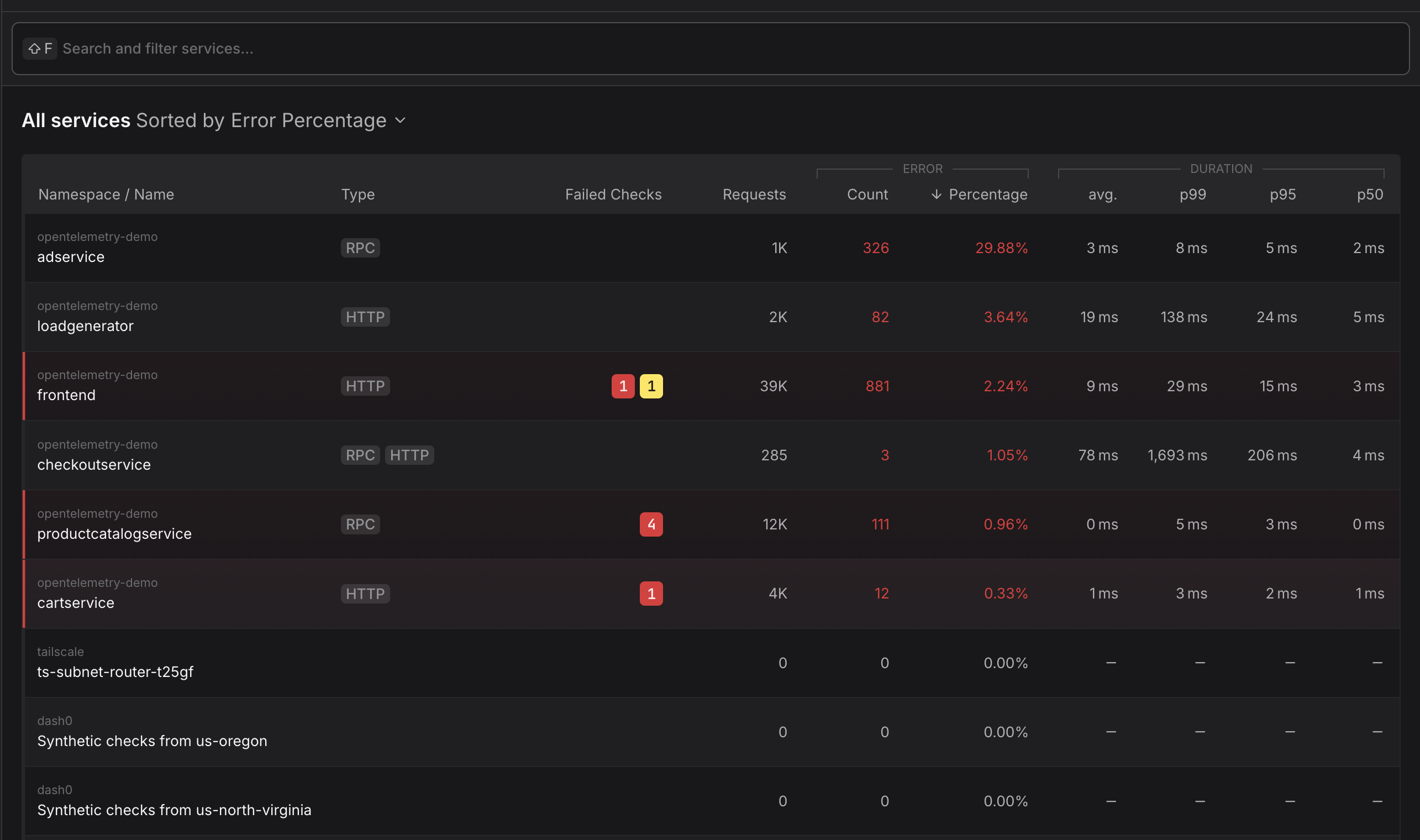 - Which services have the highest error rates right now?