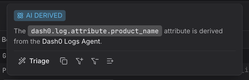 - Lets you open Triage mode pre-scoped to that filtered set, immediately showing how that attribute value is distributed across other dimensions — useful for understanding whether the value is concentrated in a particular service, host, or log pattern.