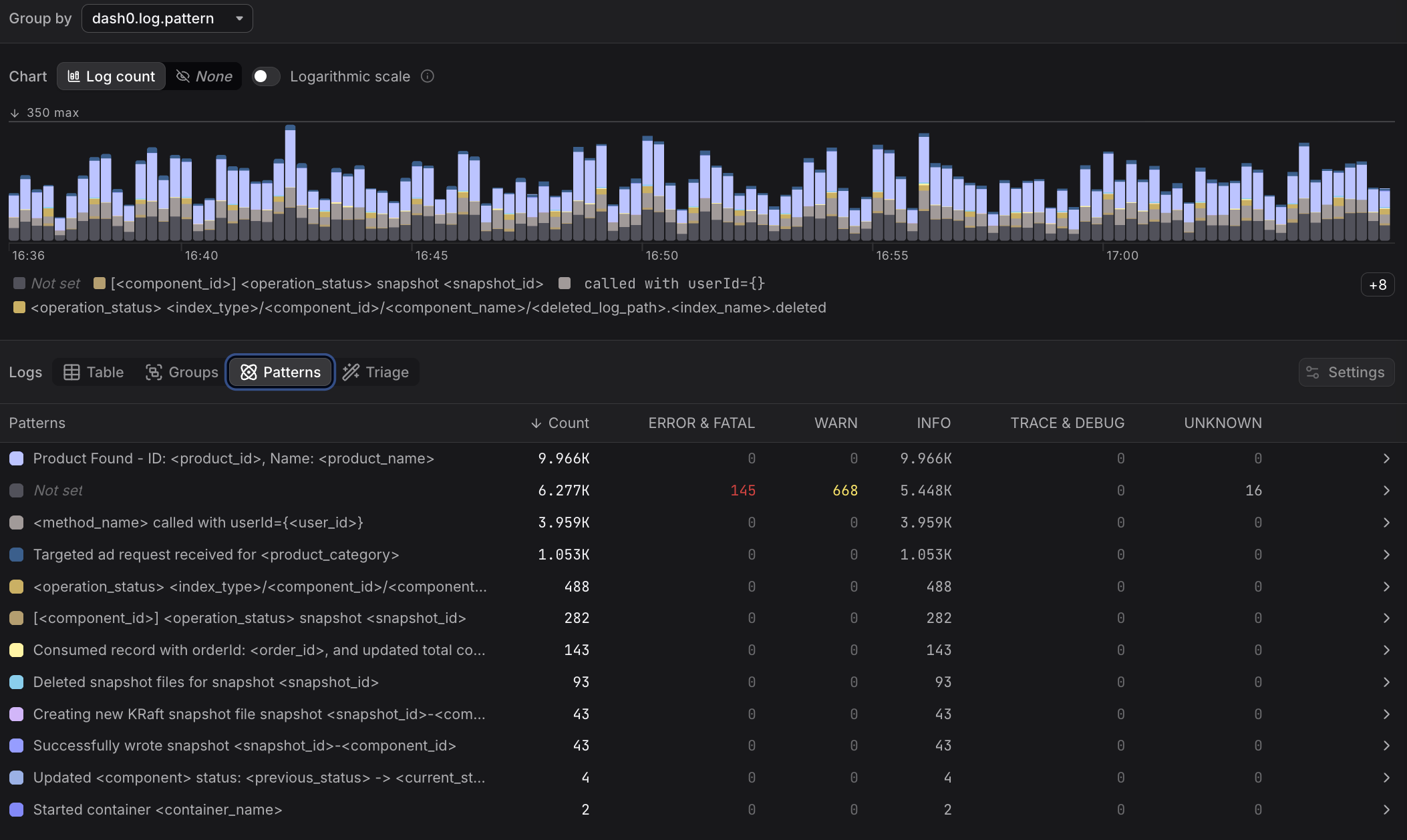 This reduces thousands of individual log lines into a small number of meaningful templates, making it much faster to understand what your system is doing.