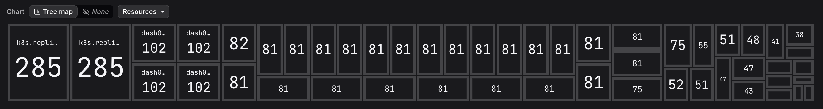 For example, switching to Resources redraws the map with resource counts, which is useful when you want to understand which metrics are emitted most broadly across your infrastructure rather than which have the highest cardinality.