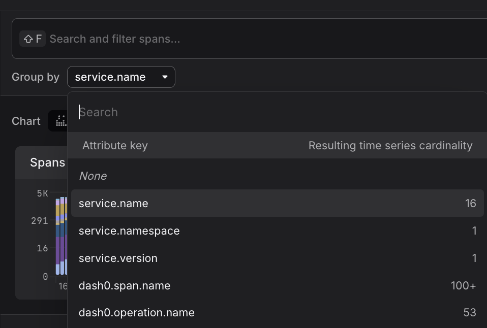 You can change this via the Group by control at the top of the Tracing Explorer to aggregate by any attribute present in your spans — for example, http.method, deployment.environment, or a custom attribute.