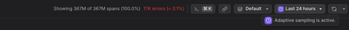 The Dash0 UI displays an indicator when Adaptive Sampling is active: