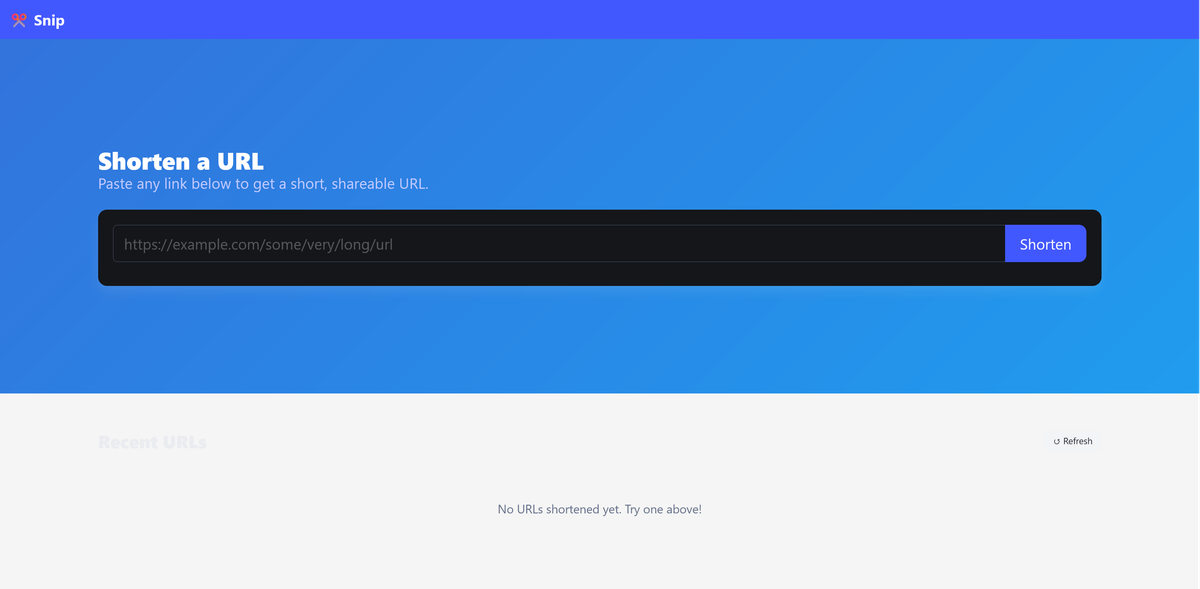 Open http://localhost:3000 in your browser to load the Snip UI. It should load
