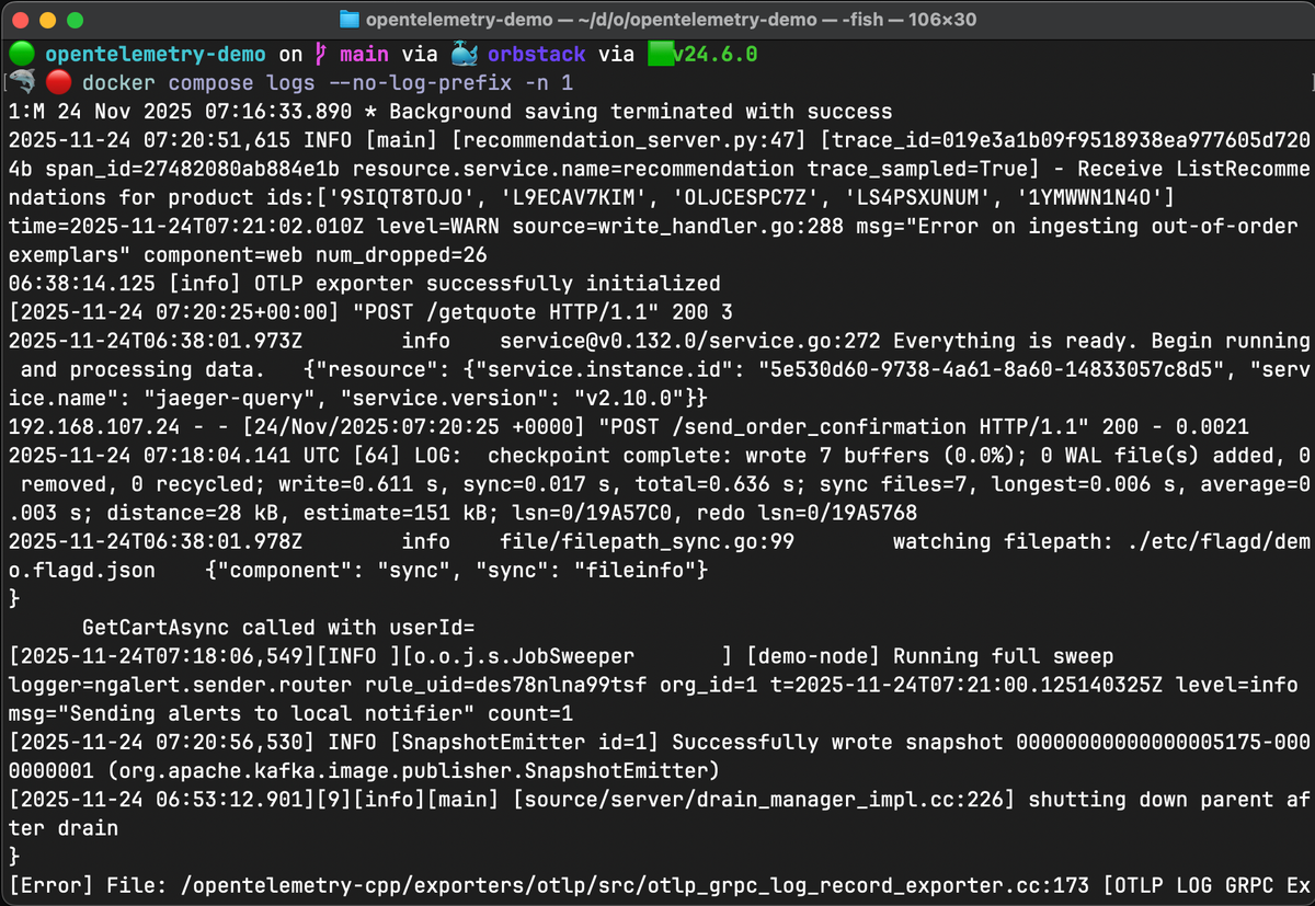 By default, Docker Compose prepends the service name and color-codes each line to differentiate streams. While helpful for human readability, this metadata interferes when you need to copy logs into a parser, share them in a bug report, or pipe them into external tools.
