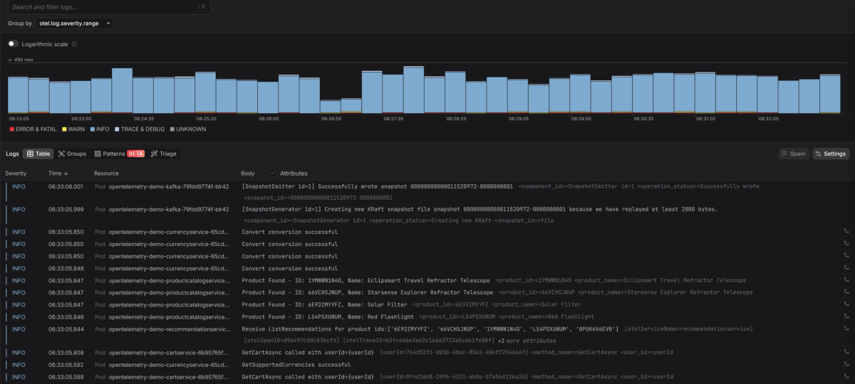 Then you'll start seeing your logs in the Dash0 interface.