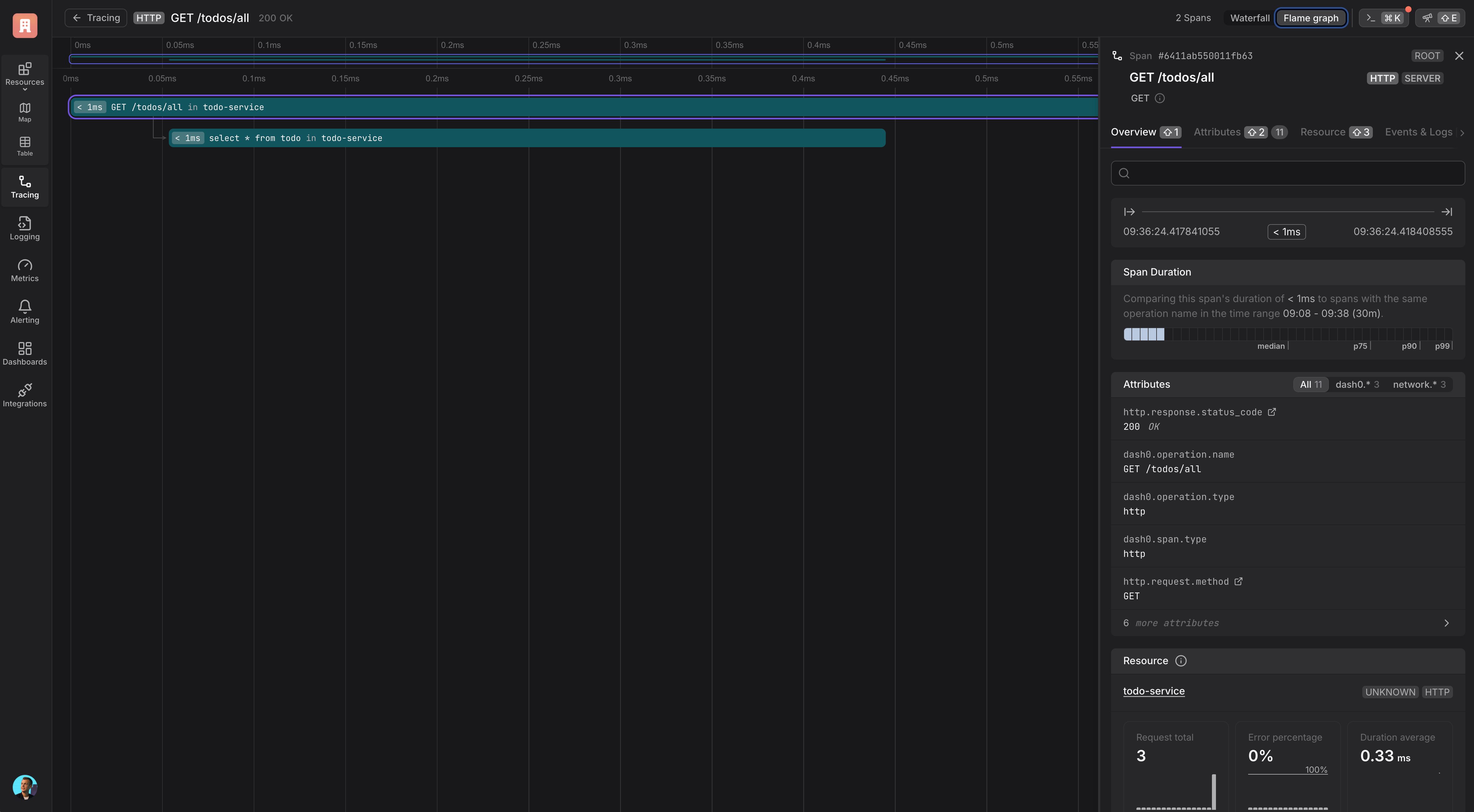 Finally, go to dash0.com, click on the Tracing menu item, and you should see something similar to the following: