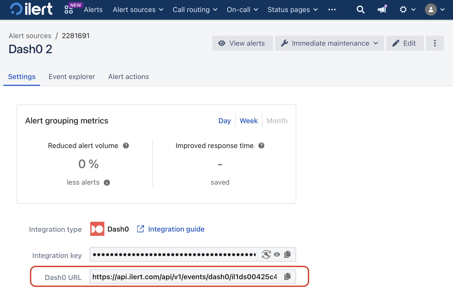 | URL | Provide the ilert URL where notifications will be sent. You can find this in your ilert Alert sources settings in the filed Dash0 URL. |
