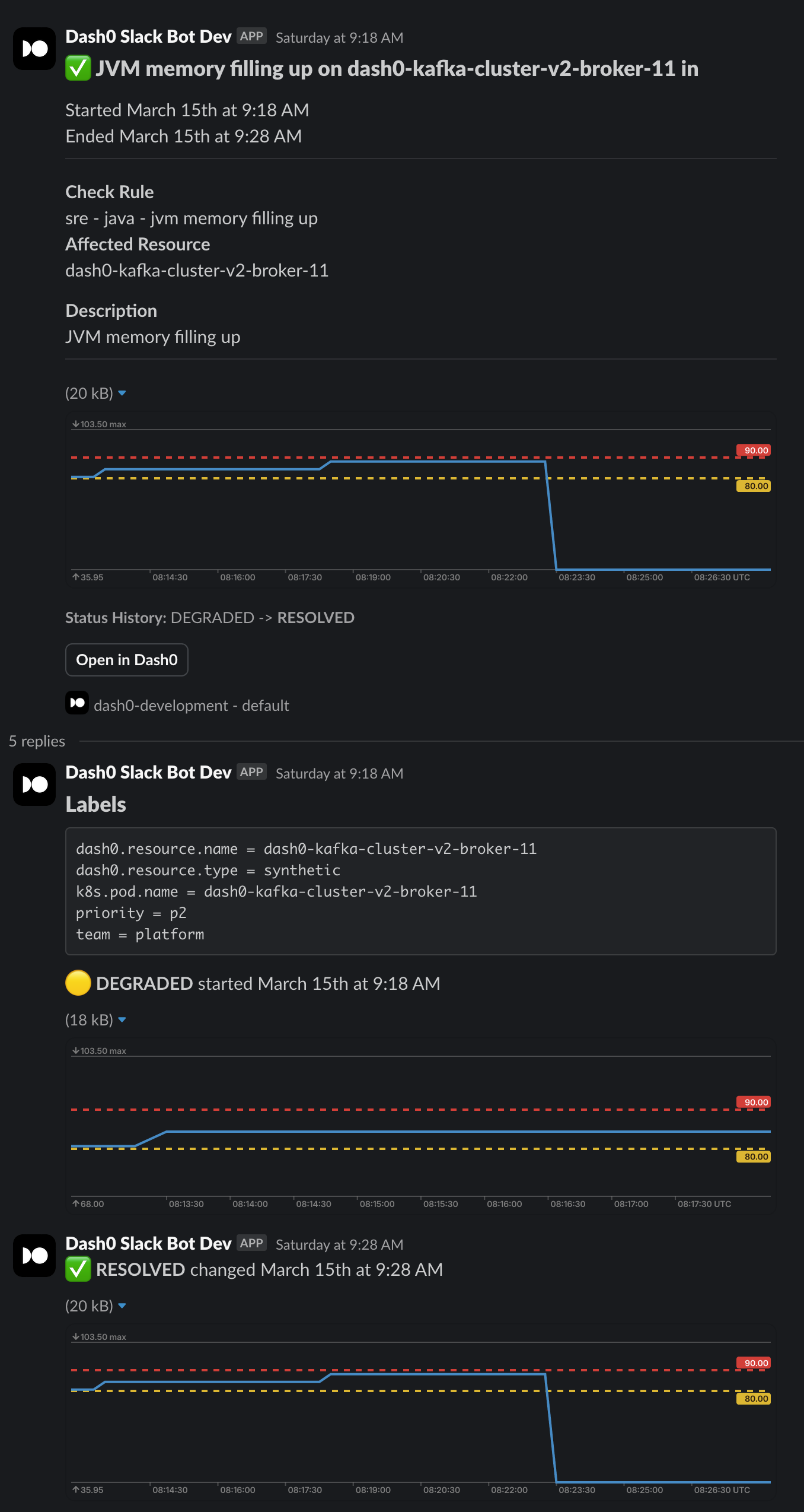 Dash0 integrates with Slack to deliver instant system alerts and notifications, providing real-time visibility into your critical systems.