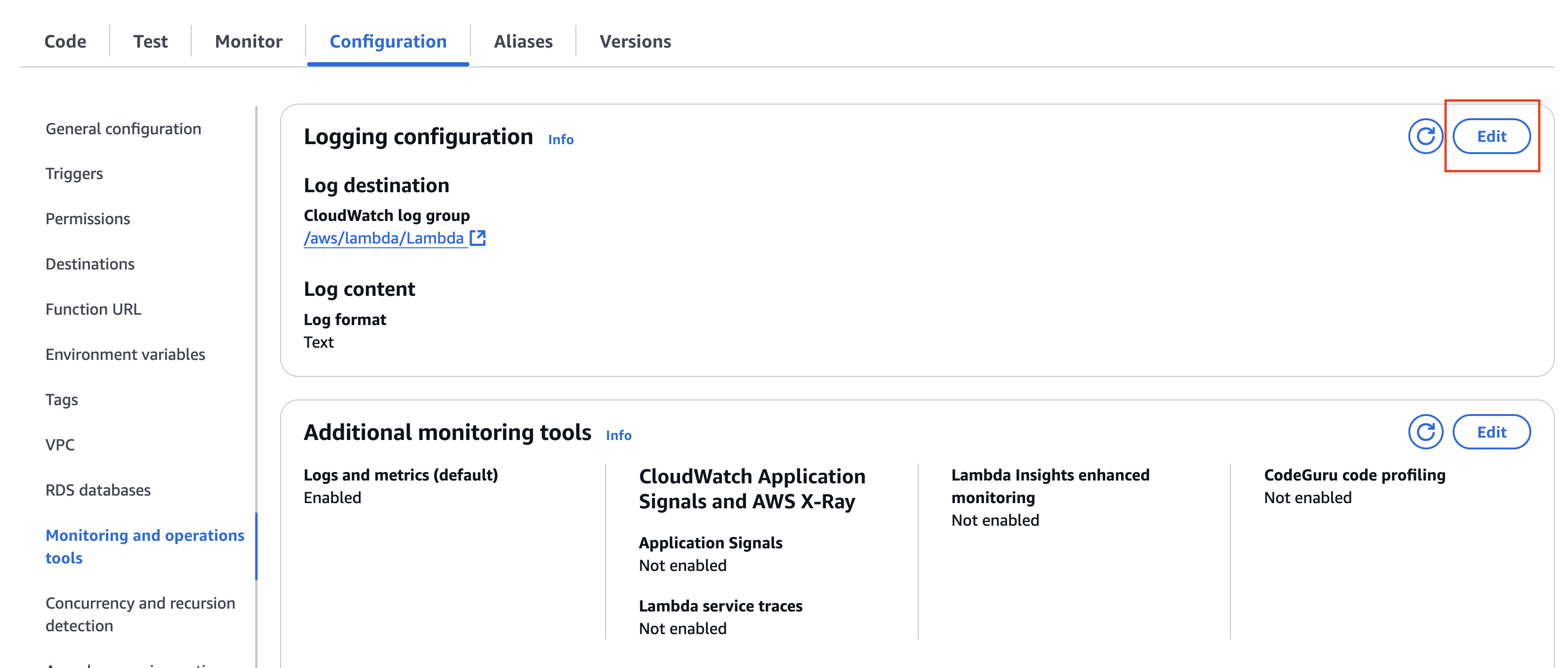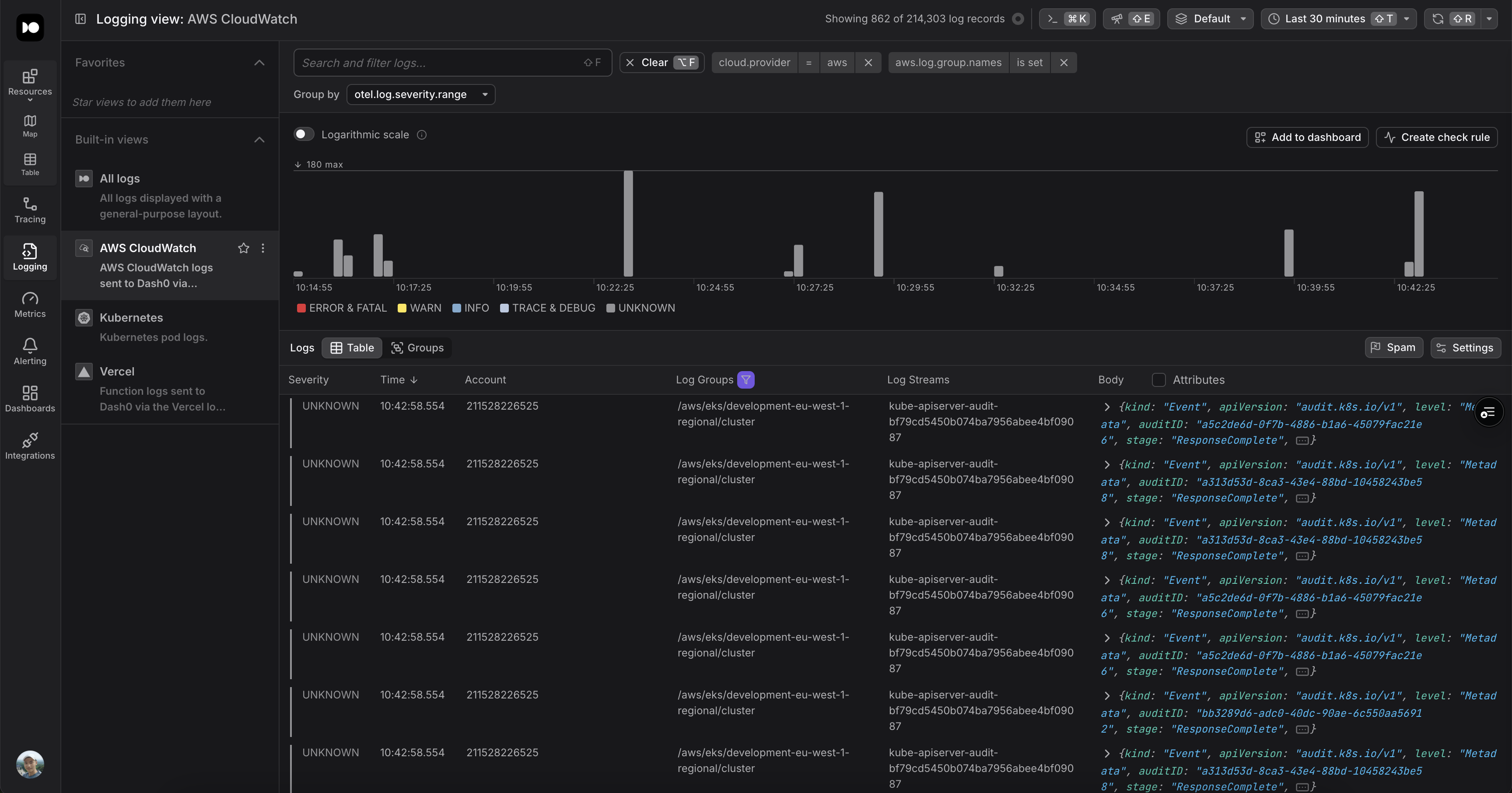 Once everything is set up, you can find CloudWatch logs by using the built-in AWS CloudWatch logging view.