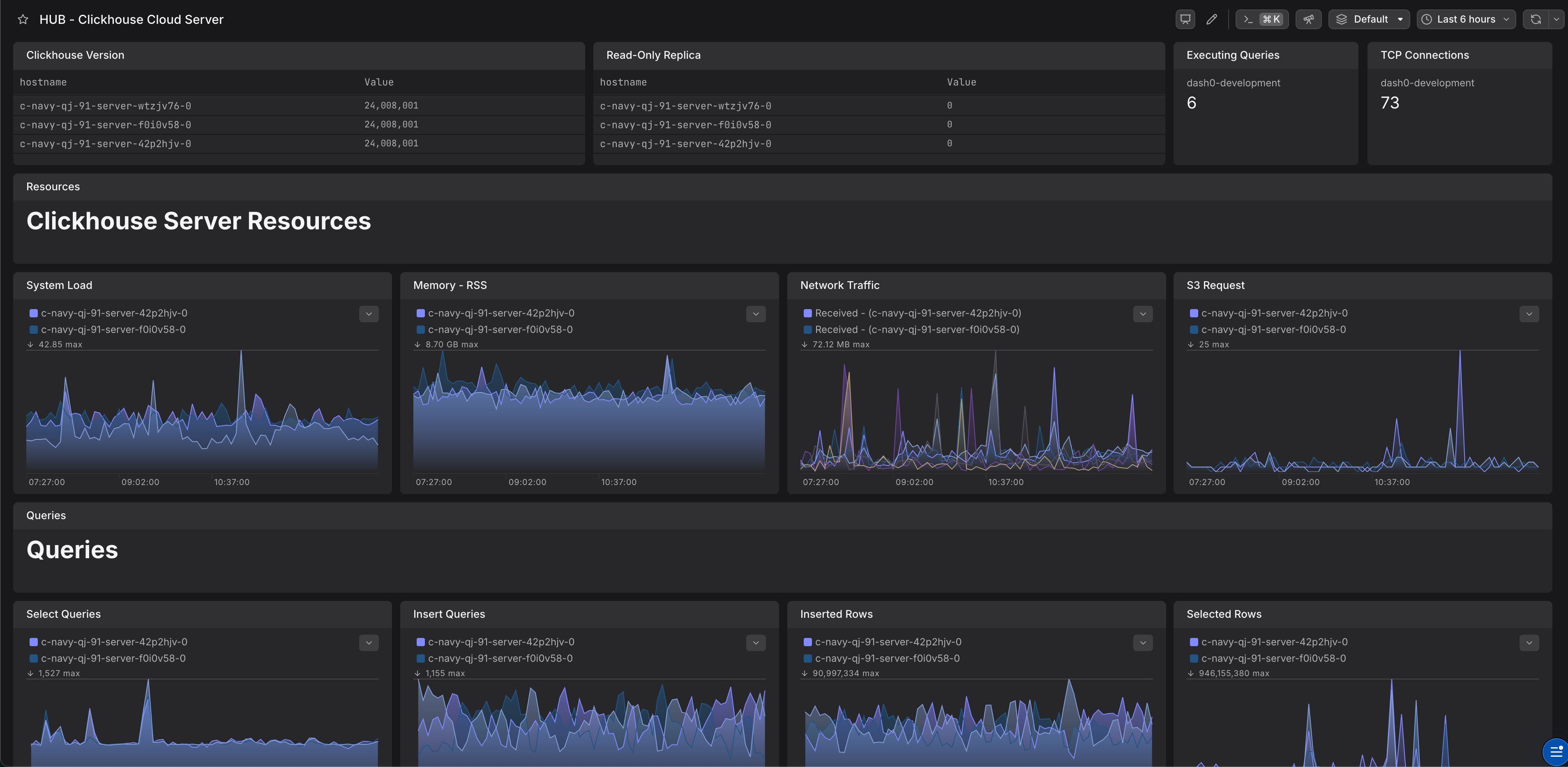 ClickHouse is a highly-potent columnar database. If you want to, you can have ClickHouse Inc. run it for you in their cloud. If you are using their offering, you will still want insights into ClickHouse's behavior. To that extent, ClickHouse Cloud exposes metrics for its customers that you can view via Dash0.