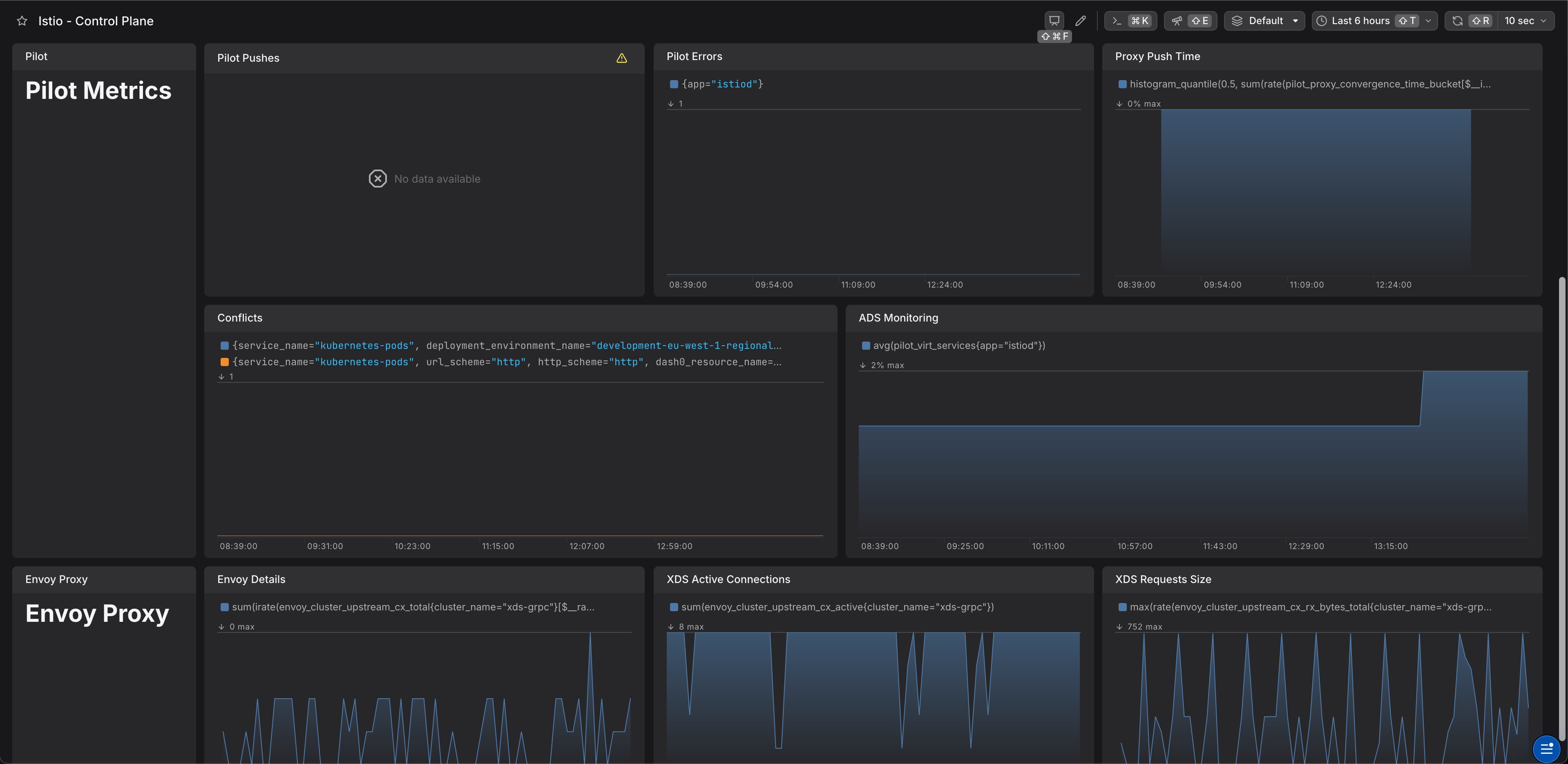 Istio is one of the most commonly used service meshes. Istio configures Envoy instances under the hood and handles networking for you. Service meshes are somewhat complex, and visibility into their activity can be the difference between easy troubleshooting and a long-winded analysis.