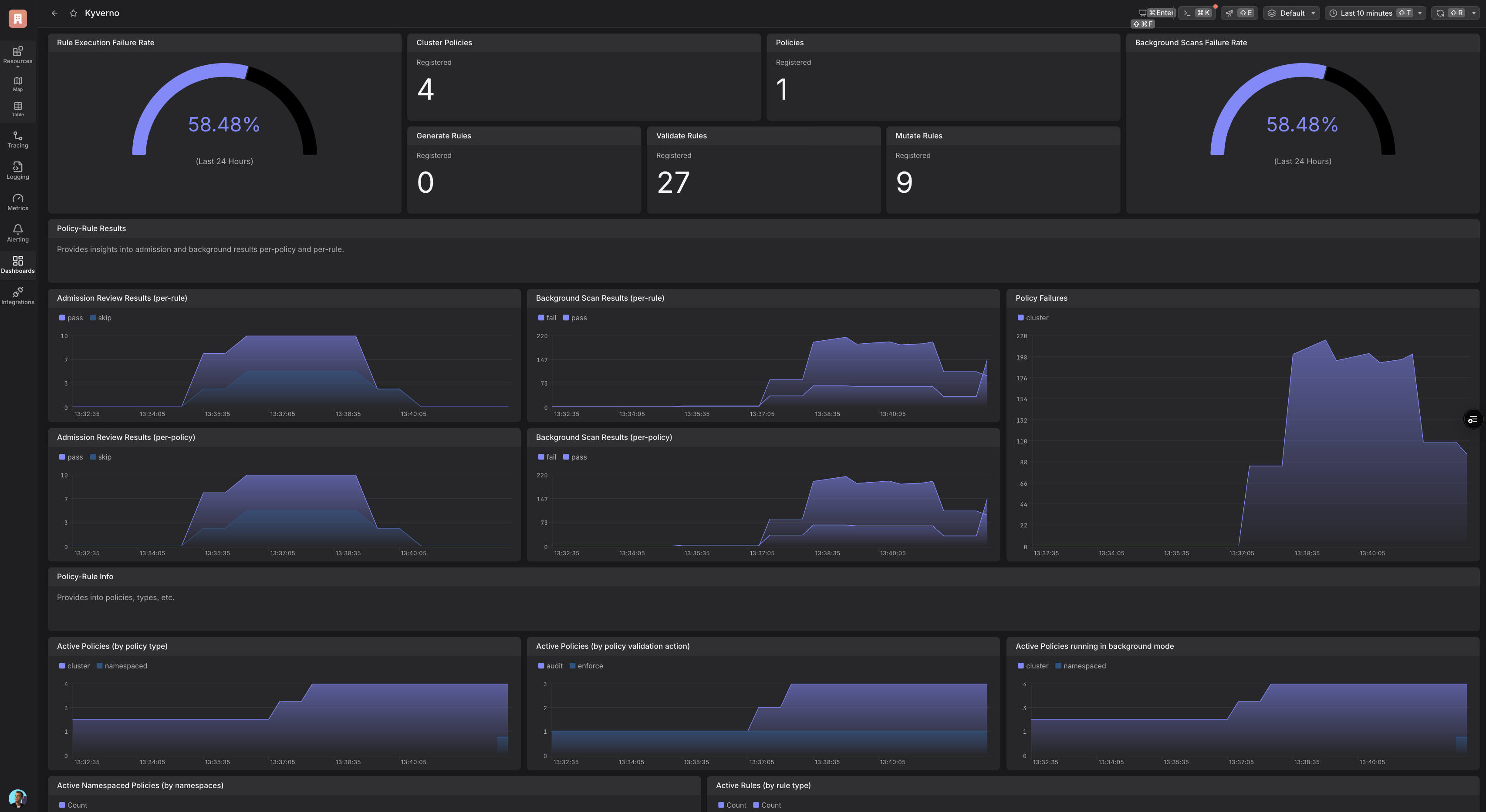 This Dash0 integration enables monitoring and visibility into the state and performance of Kyverno.