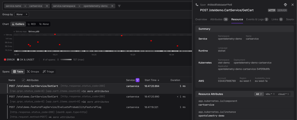Without consistent resource attributes, even well-structured spans lack the context needed to answer the most basic triage questions like which service is failing, which version introduced the problem, and which environment is affected.