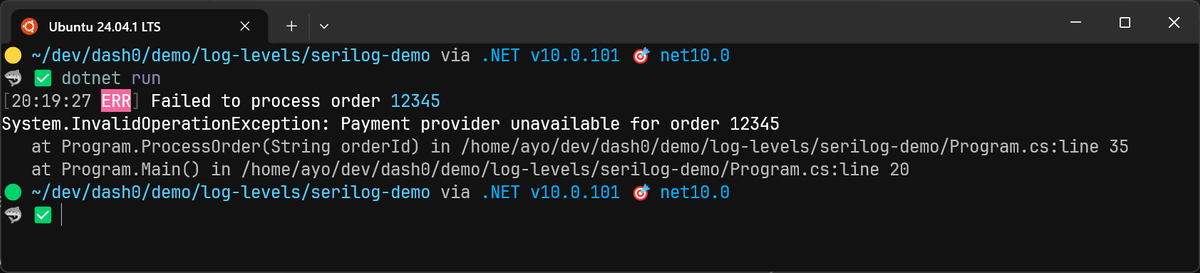 Serilog’s level system gives you enough precision to express that intent clearly, as long as you use it consistently.