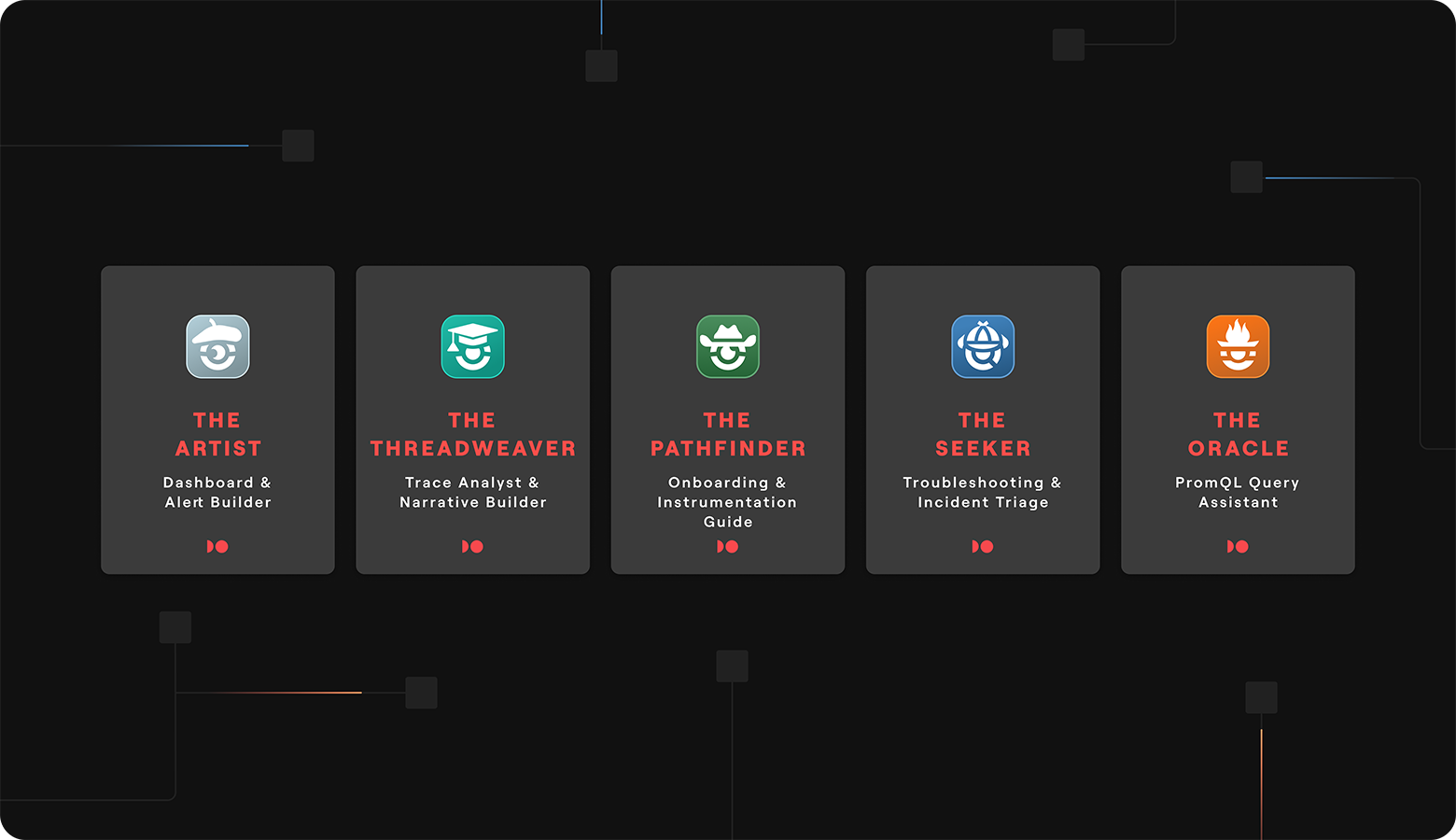 Agent0 brings a team of focused AI specialists into your observability workflow - the Seeker, the Oracle, the Threadweaver, the Pathfinder, and the Artist. Each one takes on a different piece of the puzzle, from triage to data quality to dashboards and queries, working together to turn raw telemetry into real insight. The result is observability that feels less like detective work and more like… having a support party.