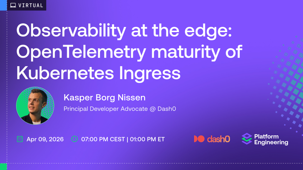I'm Kasper Borg Nissen, Director of Product Marketing & Developer Relations at Dash0. I'm passionate about Observability and bridging the gap toward developers through Platform Engineering. I've previously worked 8 years as a platform engineer, I'm a former co-chair of KubeCon+CloudNativeCon, and I'm genuinely obsessed with all things cloud-native and open standards.